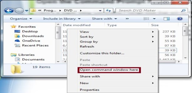 All it is depend on navigate, in Windows, to the folder where we want to start working from in the Command Prompt. Once there, hold down Shift key while right-click anywhere in the folder. Once the menu pops up, notice there is an entry that’s not usually there: Open command window here.