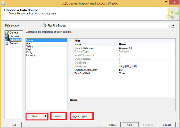 Hi Guys, Today when I was just doing some R&D with SQL server 2016 CTP2, got a new feature in “SQL Server Import and Export Wizard”. I was just importing a CSV file and got a new feature in advance tab as New, Delete and Suggest Types..
