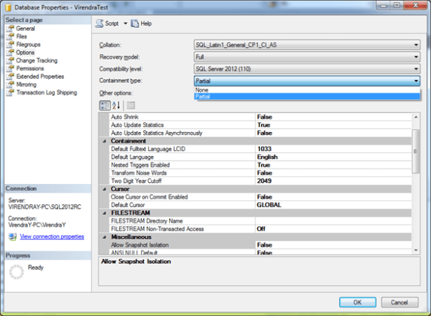 To demonstrate this, here DB name is VIRENDRATEST and Table name is TBLTEST