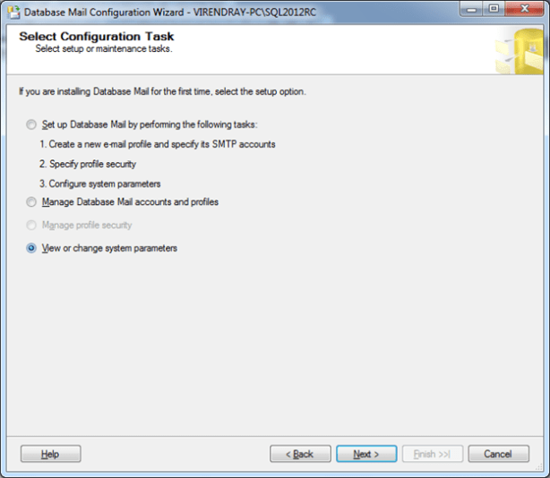 Choose Set Up Database mail by performing the following tasks :, Then Next
